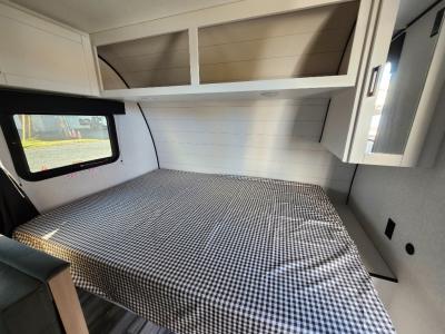 Sleeps 5 Length 22 ft 1 in Ext Width 8 ft Ext Height 10 ft 3 in Int Height 6 ft 6 in Interior Color Country Linen Hitch Weight 335 lbs GVWR 4600 lbs Dry Weight 3245 lbs Cargo Capacity 1355 lbs Fresh Water Capacity 30 gals Grey Water Capacity 20 gals Black Water Capacity 20 gals Tire Size ST225/75R15'E' Furnace BTU 19000 btu Number Of Bunks 2 Available Beds Queen Refrigerator Type 12V Refrigerator Size 8 cu ft Cooktop Burners 3 Number of Awnings 1 LP Tank Capacity 20 lbs Water Heater Type On Demand Tankless AC BTU 8000 btu Awning Info 12' Electric with LED Lights Axle Count 1 Number of LP Tanks 1 Shower Type Standard Electrical Service 30 amp Similar Travel Trailer Floorplans